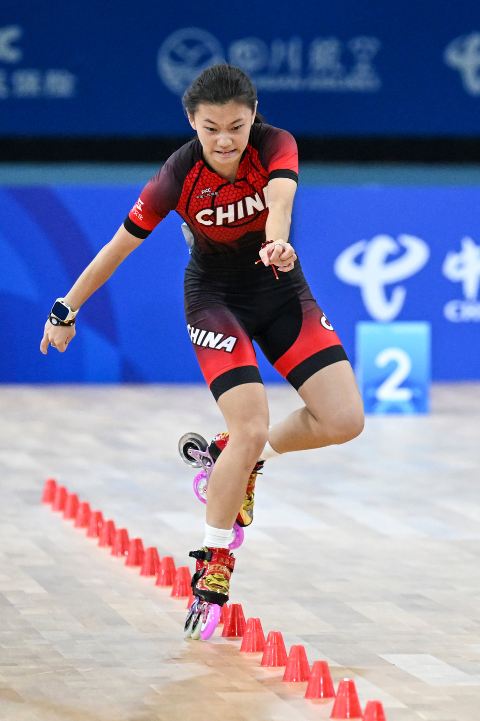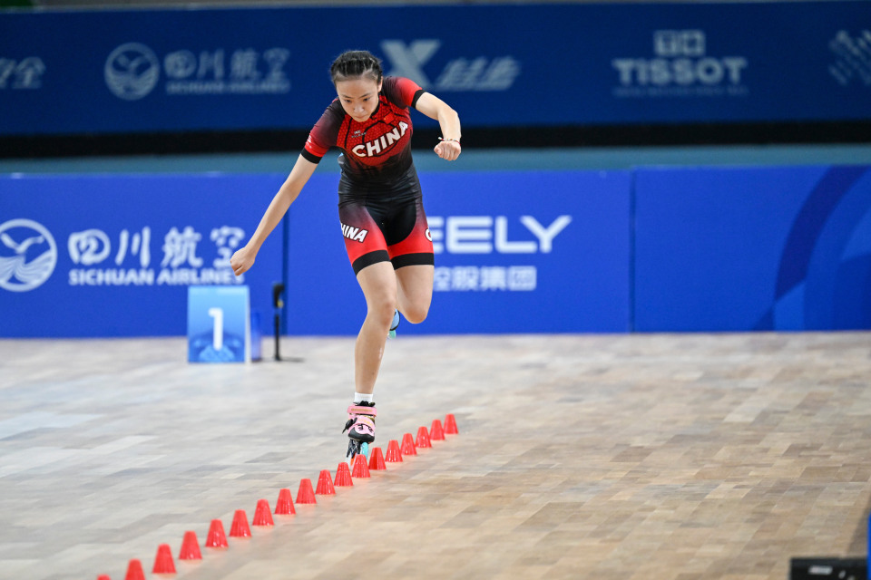 成都世运会-自由式轮滑——女子速度过桩决赛:中国选手获得亚军、季军